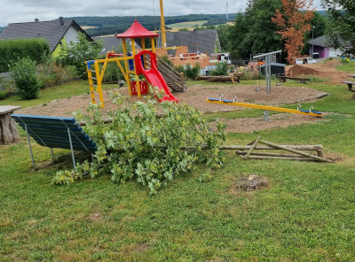 In der nacht von Montag auf Dienstag ist auf der Spielplatz am Würzerweg ein Bäumchen umgefallen.