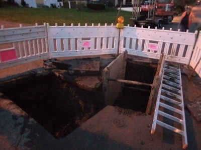 Am Montag darauf wurde dann das Leck fachgerecht repariert und die Straße in Stand gesetzt.