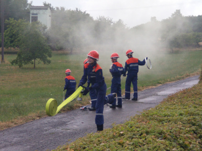 Erst präsentierte die Jugenfeuerwehr eine Löschübung. Danach fand eine Demonstration einer Fettbrand (durch die "erwachsene" Feuerwehr) statt.