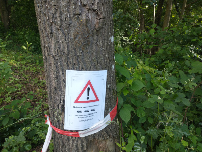 An zwei Bäume am Mithrasdenkmal sind Eichenprozessionsspinner gesichtet worden. Wir haben die beide Bäume deutlich markiert. Die Raupen ernähren sich von den Blättern ihrer Wirtsbäume. Die sehr feinen Brennhaare der Raupe, die ein Gift enthalten, können beim Menschen eine Hautkrankheit auslösen. Die Raupen und Gespinste bitte nicht berühren.