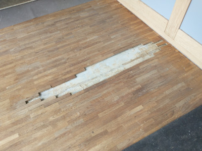 An der Kerwe ist ein Wasserschade entstanden, wodurch unter und vor der Theke der Parkettboden hochgekommen ist.