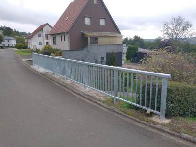 Nachdem der Gemeinderat beschlossen hat, diese Gefahrenstelle vorschriftsgemäß instand zu setzen, sind jetzt die Arbeiten - Betonunterbau und Metallzaun - fertig gestellt worden.