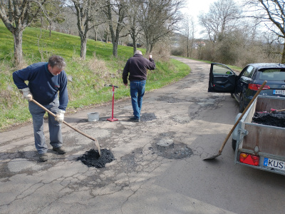 Wir haben die Löcher in der Mithrasstraße (nach dem Ortsschild) mit "Kaltasphalt" geflickt.