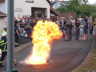 Erst präsentierte die Jugenfeuerwehr eine Löschübung. Danach fand eine Demonstration einer Fettbrand (durch die "erwachsene" Feuerwehr) statt.